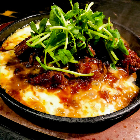 自慢の炙りユッケは、厳選した牛肉を軽く炙り、香ばしさを引き立てた贅沢な一品。とろける食感と濃厚な旨みが口いっぱいに広がります。特製タレとの相性も抜群で、お酒が進むこと間違いなし。ぜひ一度ご賞味ください。