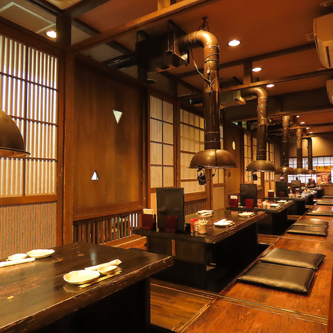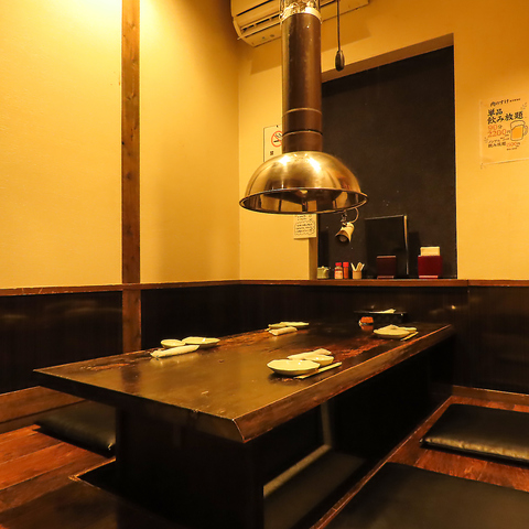 木の温もりを感じる店内は、全席完全個室のプライベート空間♪周囲を気にせず会話を楽しめるため、大切な方とのデートやご家族団らんのひとときに最適です。各部屋には強力な排煙ダクトを完備しており、衣服への匂い移りも気になりません。落ち着いた照明が灯る癒やしの空間で、時間を忘れてゆっくりおくつろぎくださいませ。