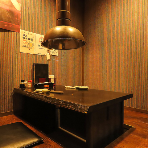 1F掘り炬燵(1から2名様) 少人数で静かにお酒を嗜みたい時も、完全個室なら誰にも邪魔されず贅沢な時間をお過ごしいただけます。周りに気を使うことなく、心ゆくまで食事を楽しめるのが個室ならではの魅力です。