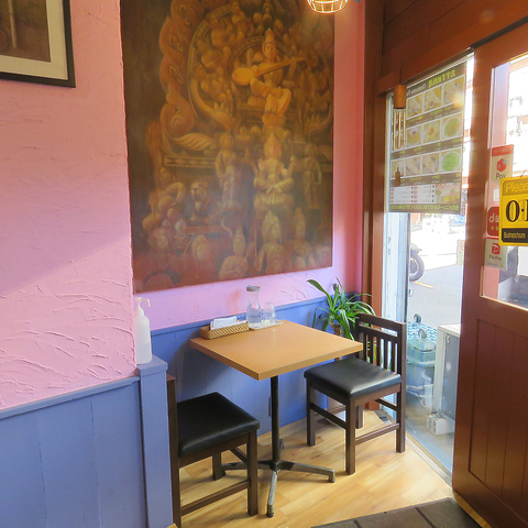 友人同士や小グループでの利用にぴったりな4名テーブル席。カレーやアジアン料理をシェアしながら、賑やかな食事時間を楽しめます。ほどよく開放感があり、普段使いからちょっとした集まりまで幅広く対応できる、使い勝手の良いお席です。
