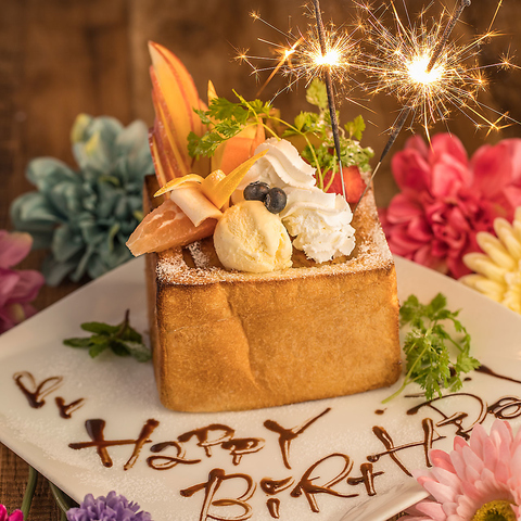 デザートプレートでワンランク上のお祝いに♪詳細はクーポンページへ!誕生日や記念日のコースをご利用のお客様にメッセージを添えたデザートプレートを無料でご用意させて頂きます。アラカルトでご利用のお客様でも、もちろんご利用可能です☆誕生日・記念日・歓送迎会
