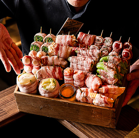 みずみずしい旬野菜を豚肉で丁寧に巻き、香ばしく焼き上げた一串。ヘルシーながら満足感のある逸品です。