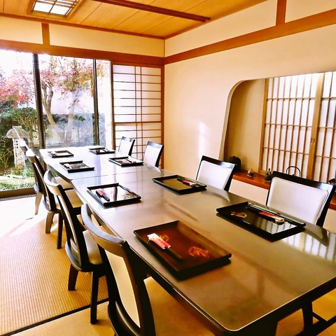 自然光が差し込む落ち着いた空間と畳の香りと静かな雰囲気が、心と身体をそっと癒してくれます。ゆったりと過ごせるお席で、こだわりの料理をご堪能ください。各種ご宴会やお祝いの席、結納・顔合わせ、法事まで幅広くご利用いただけます。