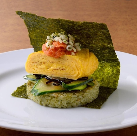 「からだよろこぶ、ひとくち。」をコンセプトにしている当店。厳選した美味しいお米をハンバーガースタイルでご提供します☆がっつり食べたい時には、具だくさん味噌汁と明太モッツァレラチーズボールか明太もつ鍋博多カツ付きの博多セットがおすすめ。