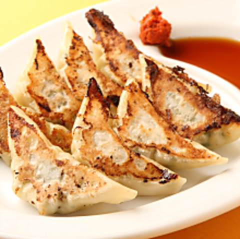 ラーメンのお供に欠かせない、パリッとジューシーな自家製餃子です。餡には厳選された新鮮な食材を使用し、噛むほどに旨味が溢れ出します。熱々の鉄板で焼き上げるため、外は香ばしく、中はふっくらジューシーな仕上がり。ラーメンとの相性はもちろん、ビールやハイボールなどのお酒にもぴったりです。