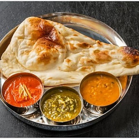 2種類カレー、ナン、ソフトドリンク、サラダ/注意点 チキンティッカーマサラ、バターチキン、バターキーマカレー +100円(税込)