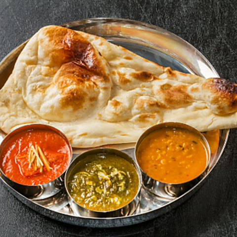 1種類カレー、ナン、ソフトドリンク、サラダ/注意点 チキンティッカーマサラ、バターチキン、バターキーマカレー +100円(税込)