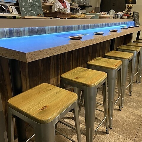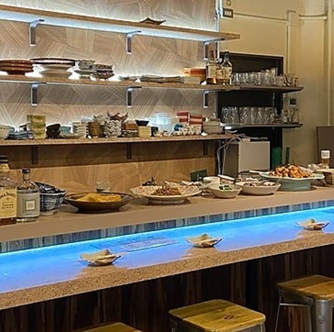 調理の気配やスタッフとの会話を間近で楽しめるカウンター席は、お一人様やカップルに人気の特等席です。目の前に並ぶ日替わりのおばんざいを眺めながら、次の一皿を選ぶのも楽しみの一つ。しっぽりと自分に浸るもよし、スタッフにおすすめを聞くもよし、思い思いの時間をお過ごしください。