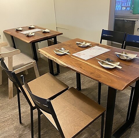 木の温もりを感じる落ち着いた店内のテーブル席は、2名様から4名様掛けをご用意しており、繋げて最大8名様程度でのご利用も可能です。ご友人同士の飲み会や同僚との会食など集まりに使い勝手の良い空間です。程よい距離感で会話を楽しみながら、和やかなひとときをご提供いたします。