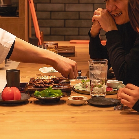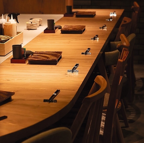 大将が焼鳥を焼く姿を見ながらお食事を愉しむことができる特等席。カップルやお一人様利用にも最適です。