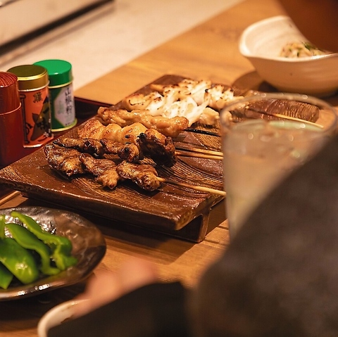 焼鳥に寄り添う逸品も豊富にご用意。鮮度にこだわった馬刺しや、名物コールスローサラダなど、席を上品に彩るおつまみが揃います。名物のかわ焼きとともに、飽きのこない組み合わせをお楽しみください。