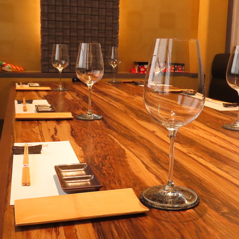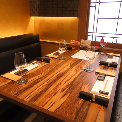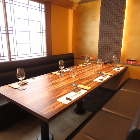 当店自慢の完全個室は、4名席が2つ、6名席が1つございます。大切な時間を過ごすのにはこちらが最適です。静かな環境の中で、心ゆくまで料理を堪能しながら、親しい人との会話を楽しんでください。