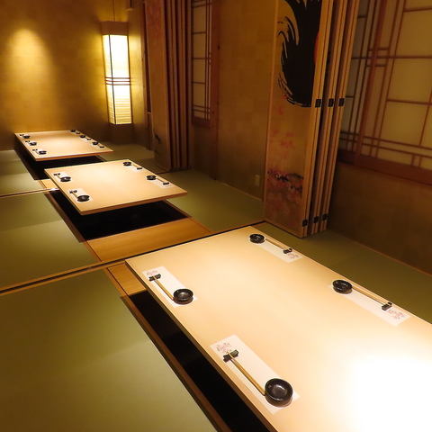 当店の掘りごたつ個室は、6名席が2つと4名席が1つございます。足を伸ばしてくつろげる掘りごたつは、温もりを感じる居心地の良い空間。友人や家族との大切な時間を、リラックスした雰囲気の中でお楽しみいただけます。