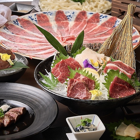 熊本といえば馬肉料理!旨みの強いこだわりの馬肉を使ったメニューをよりどりみどりご用意しております。馬肉づくしのコースも各種ご用意しておりますので、心ゆくまで楽しみたい方にオススメです♪