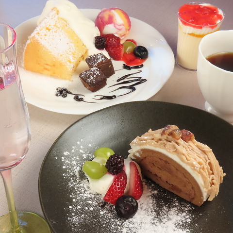 ふわふわでしっとり♪甘さがやさしいシフォンケーキとお好みのドリンク☆トッピングにアイスやフルーツを♪