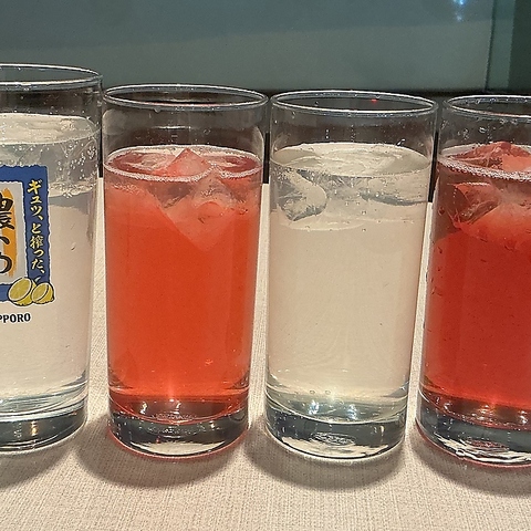 | サワー・果実酒 | 巨峰サワー/レモンサワー/ピーチサワー/グレープフルーツサワー/梅酒/黒梅酒 |