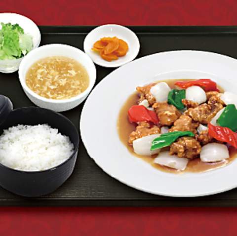 酢豚や麻婆豆腐などの定番メニューをごはん、スープ、サラダ等がセットになった定食メニューでご用意♪