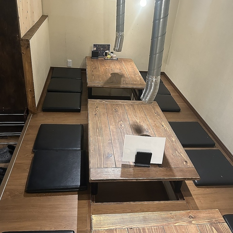 | 掘りごたつ | 6名様×2 | 会社の宴会や合コンなど長時間盛り上がりたい時には、掘りごたつ席がおすすめ!窮屈さを感じることなく足を楽にできるから、最後まで元気いっぱいに楽しめます。美味しい料理をみんなで囲めば、自然と笑顔がこぼれる素敵なひとときになります♪ |