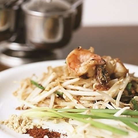 米粉の麺をナンプラーをはじめとするオリジナルソースで炒めた甘酸っぱい味が特徴の焼きそばです。エビ、もやし、ニラ、厚揚げを一緒に炒めています