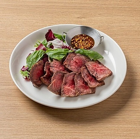 国産牛タイ風ステーキは、柔らかな国産牛を贅沢に使用した一品です。当店オリジナルのタイ風ソースはピリ辛で、食べるたびにやみつきになる味わいです。肉とソースの絶妙なコンビネーションが、あなたの食欲をそそります。友達とシェアしても楽しいメニューで、特別な日にもぴったり!是非一度ご賞味ください♪ご来店お待ちしております!