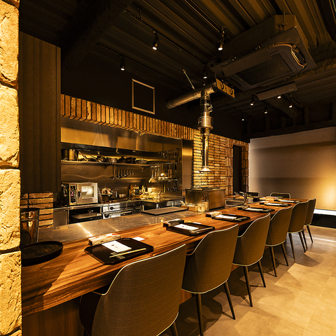 北新地駅5分の場所に店を構える当店は、ゆとりのあるお席を完備しており、お洒落で落ち着いた雰囲気の空間をご提供。記念日や誕生日などの特別なデート、接待、ご友人とのお食事などにぴったりです。貸切も可能ですので事前にお電話にてご相談ください【北新地/大阪/お肉/肉料理/デート/記念日/誕生日/カウンター/隠れ家】