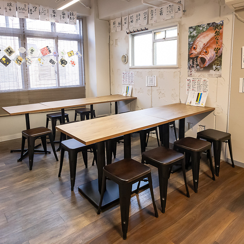 【友人同士の飲み会・会社宴会等に】中野駅から徒歩4分!カジュアルで居心地の良い広々としたテーブル席は、友人同士やご家族、グループ利用まで幅広く対応。ゆったり座れる配置で会話も弾み、海鮮料理を囲んでくつろぎの時間をお過ごしいただけます。宴会向けのコース料理もございますので是非ご利用下さい!