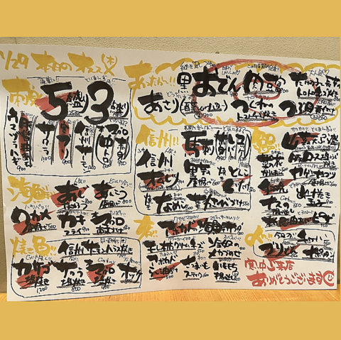 安さが自慢の大衆酒場である当店では、居酒屋の定番メニューから信州の郷土料理まで、こだわりのメニューを均一価格でご提供。信州名物の馬刺しや山賊焼きなども気軽に楽しめ、毎日変わるおすすめ品は30種類以上◎驚きの価格で心ゆくまで美味しい料理をご堪能ください。350円(税込)~500円(税込)の均一価格からご用意しております。