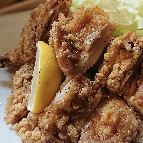 特製ダレに漬けた鶏もも肉を 一枚丸ごと揚げました!