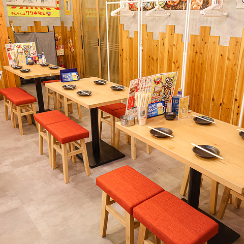 さまざまなのシチュエーションでご利用できる少人数様向けテーブル席を完備しております。いるだけでワクワクしてしまうネオ大衆の店内でお食事をお楽しみください。お席だけのご予約や当日のご予約も受け付けております!名駅での宴会・飲み会・歓迎会・送別会など様々なシーンでご利用下さい!