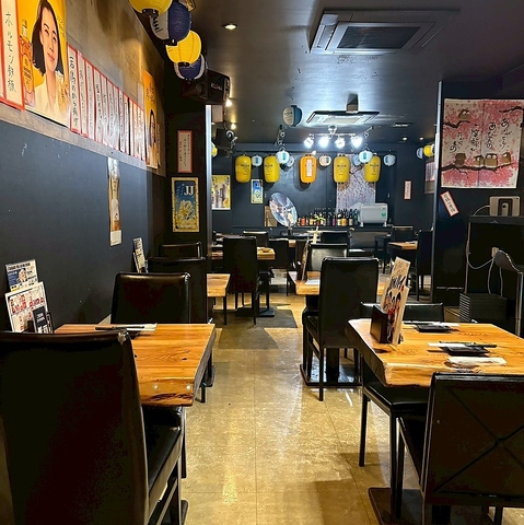 カーテンで仕切られた半個室空間。プライベート感も抜群で、合コンや女子会にピッタリ◎黒のインテリアでまとめられたシックで落ち着いた雰囲気の中、お食事やお酒をお楽しみください。カラオケやダーツなどのオプションのご用意もございます♪