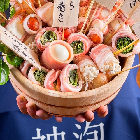 とり酒場名物!新鮮なレタスを豚肉で巻いて串打ちした巻き串です
