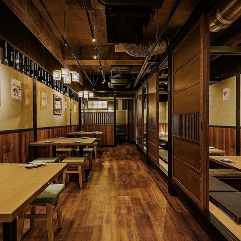 【2/4/6/10名様..個室/半個室完備!!】ごゆっくりお楽しみいただける完全個室をご用意☆大衆感抜群のれん半個室や店内の活気溢れるオープン席もおすすめです♪鹿児島天文館での仕事帰りの一杯や仲間との飲み会、ご宴会などレイアウトを最適にしてご案内いたします!大衆感あふれる落ち着く店内でごゆっくりお寛ぎ下さい!