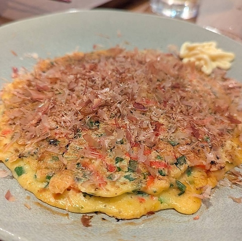 ふわっと焼き上げた長芋に、とろろのやさしい甘みが広がる一品。外は香ばしく、中はとろとろ食感で、お酒にも相性抜群。鉄板で熱々のままお楽しみください。シンプルながら素材の旨みを感じられる、笑わの定番メニューです。