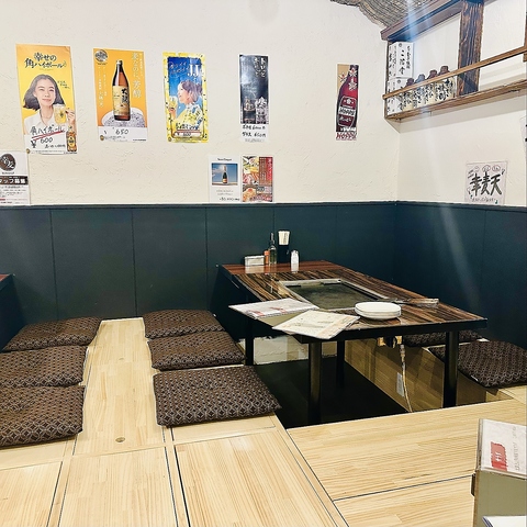 【ニューオープン!】店内は全席掘りごたつとなっております。全20席で少人数から大人数まで様々なシーンでご利用いただけます。落ち着いた空間でお楽しみください。お酒の種類も豊富に取り揃えており、飲み放題付きコースもご用意しております。15名様から最大24名様まで団体様貸切利用可能となっております!