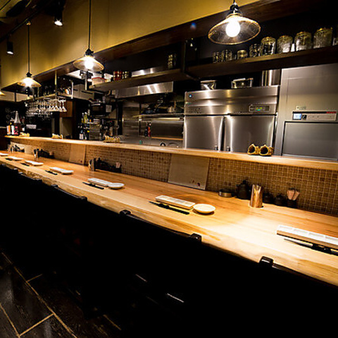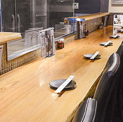 お一人様でも気兼ねなくご利用いただけるカウンター席を完備。目の前で調理されるライブ感が食欲をそそります。