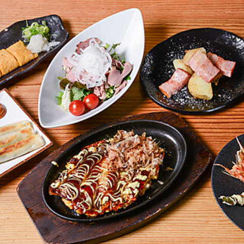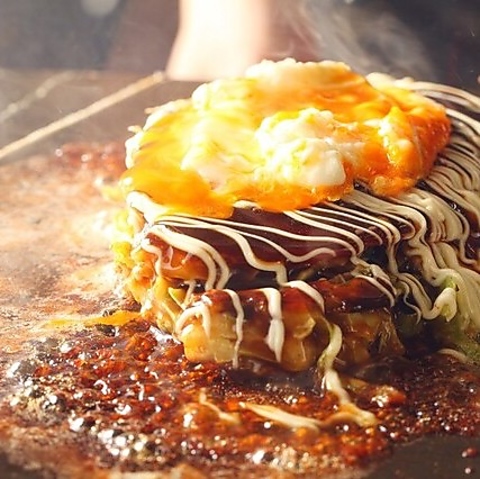 厳選した野菜やA4ランク以上の黒毛和牛サーロインの鉄板焼きが自慢です。「黒毛和牛のすき焼き」など上質なお肉を取り揃えております。豚玉や海鮮のお好み焼きや焼きそば、豚平焼など自慢の鉄板料理が勢揃い!ふわとろの「シンプル出汁巻き」もおすすめです。