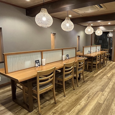 少人数での食事や気軽な飲み会には、ゆったりとしたテーブル席がおすすめ。木を基調とした和の店内は、会話が弾む落ち着いた雰囲気で、友人同士やご家族、同僚とのお食事にぴったりです。おつまみメニューお酒も充実しており、程よい距離感でくつろぎの時間をお過ごしいただけます。