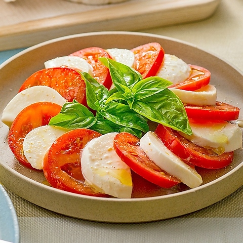真っ白なモッツァレラのやわらかな食感と、太陽をたっぷり浴びた完熟トマトの甘みが奏でる、シンプルで贅沢なハーモニー。オリーブオイルの芳醇な香りとバジルの爽やかな風味が加わり、一口ごとに地中海の風を感じる至福のひと皿。素材の力を最大限に引き出した、究極のシンプルがここにあります。