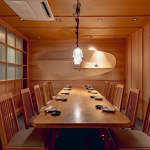 2名様からご利用いただける完全個室を多数ご用意しております。デートおよび接待などにも最適でございます。竹をイメージしたデザインで落ち着きのある雰囲気とお食事を楽しむことができます。
