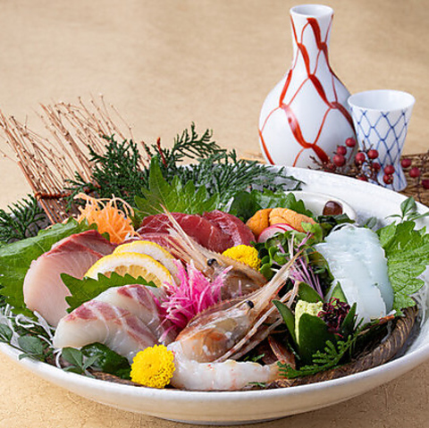 その時々の旬の鮮魚を味わえる、平日限定のお得なコースです。博多や函館、串本の漁港から直送された鮮度抜群の海の幸をお造りや炉端焼きでご提供。18時までのご予約で、お一人様4500円(税込)と大変リーズナブルな価格設定となっております。お仕事帰りのさく飲みや同僚との食事会に最適です。