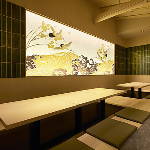 大阪駅直結でアクセス抜群の当店は、和モダンな内装で落ち着いた雰囲気です。テーブル席やカウンター席のほか、座敷個室など用途に応じて選べるお席がございます。最大15名様ご利用可能な掘りごたつのお座敷席は貸切も可能。様々なシーンでご利用いただけます♪