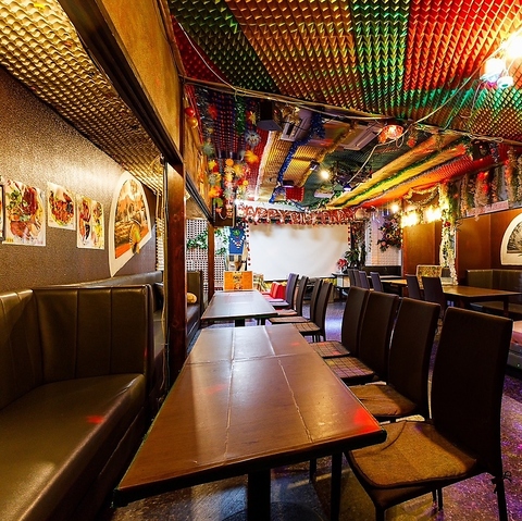 天井を彩る鮮やかな意匠と幻想的な光が、異国の夜へと誘います。本場の活気とレストランバーの心地よさが融合した空間は、ただ食事をする以上の高揚感を与えてくれるはず。2階に広がるテーブル席は、都会の喧騒を忘れてリラックスできる隠れ家のような雰囲気。五感を刺激する本場の味と共に、至福のひとときを。