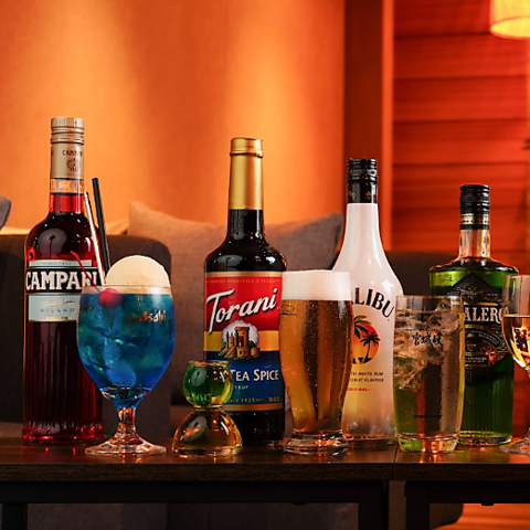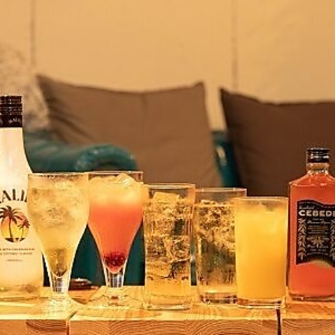 カクテルベースと、コーラ・ジンジャーエール・オレンジジュース・パインジュース・グレープフルーツジュース・ミルク・ウーロン茶・ジャスミン茶・紅茶・ソーダ・トニックウォーターを合わせてお楽しみください!