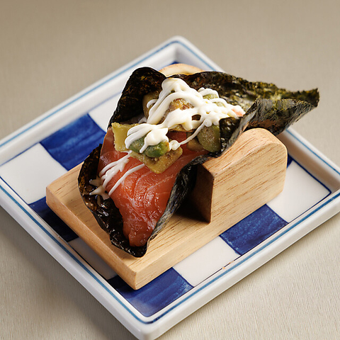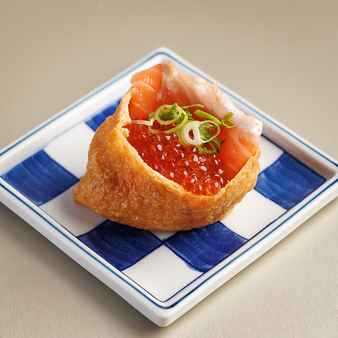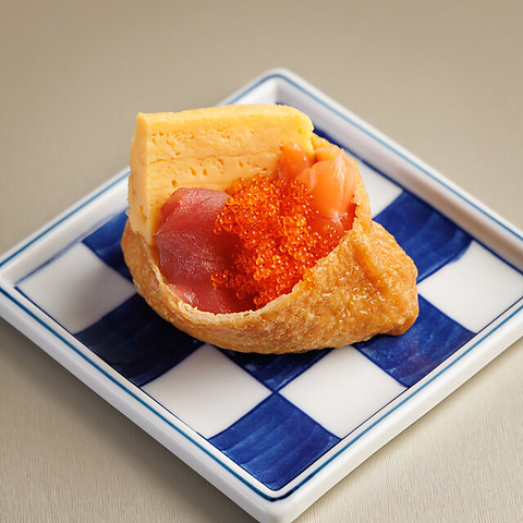 ぷりっとした海老、濃厚な帆立、とろけるサーモン、そして輝くいくらを香ばしいいなりで包み込みました。 ひとつで“北海のうま味”を味わえる、まさにプレミアムな一品!