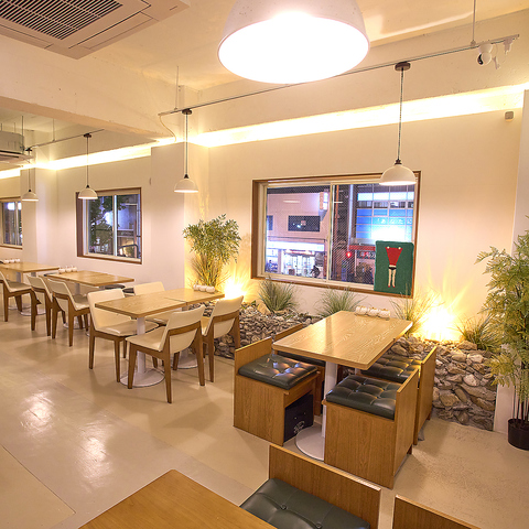 グレーと白を基調としたミニマルな店内は、都会の喧騒を忘れさせる洗練された空間。温かい色味の間接照明が灯り、夜はおしゃれで落ち着いた雰囲気を演出します。フォトジェニックな内装は、誕生日会や女子会、大切な方とのデートにも最適。本場ベトナムの味を、モダンなインテリアに囲まれてゆったりとお楽しみください。