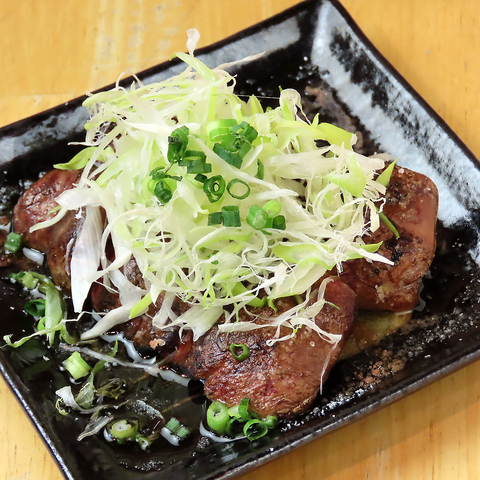 串焼きと違い、炙ることにより生レバーに近い味わいでお楽しみいただける「炙り白レバー」。脂肪分が多いため、濃厚クリーミーな味わいととろけるような食感が特徴です◎たっぷりのネギと一緒に頬張れば、ご飯もお酒も進むこと間違いなし!
