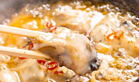 ぷりっとした大粒の牡蠣とオリジナルアヒージョソースでぐつぐつと…