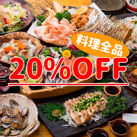 【赤字覚悟】当店自慢の地鶏料理から創作和食まで全品20%OFFになるクーポンをご用意しております♪