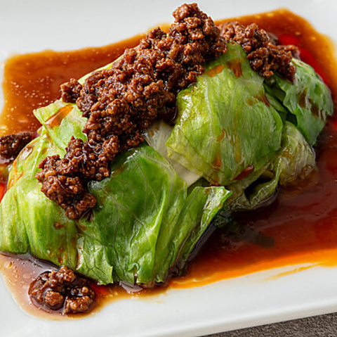 シャキッと茹で上げたレタスに、旨味たっぷりの自家製肉味噌をたっぷりとかけた一品。レタスのさっぱり食感と、甘辛くコクのある肉味噌の相性が抜群で、箸が止まらなくなる美味しさです。前菜やお口直しにもおすすめ、ヘルシーなのに満足感のある人気メニューです!