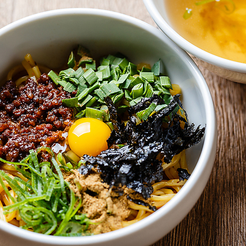 もちもちの太麺に、甘辛く味付けした肉味噌と香味野菜、卵黄を絡めて楽しむ台湾風まぜそば。ニンニクの旨味とラー油のピリ辛が食欲を刺激し、よく混ぜるほどコクと旨味が広がります。〆にも満足感たっぷりで、一度食べたらやみつきになる人気メニューです♪